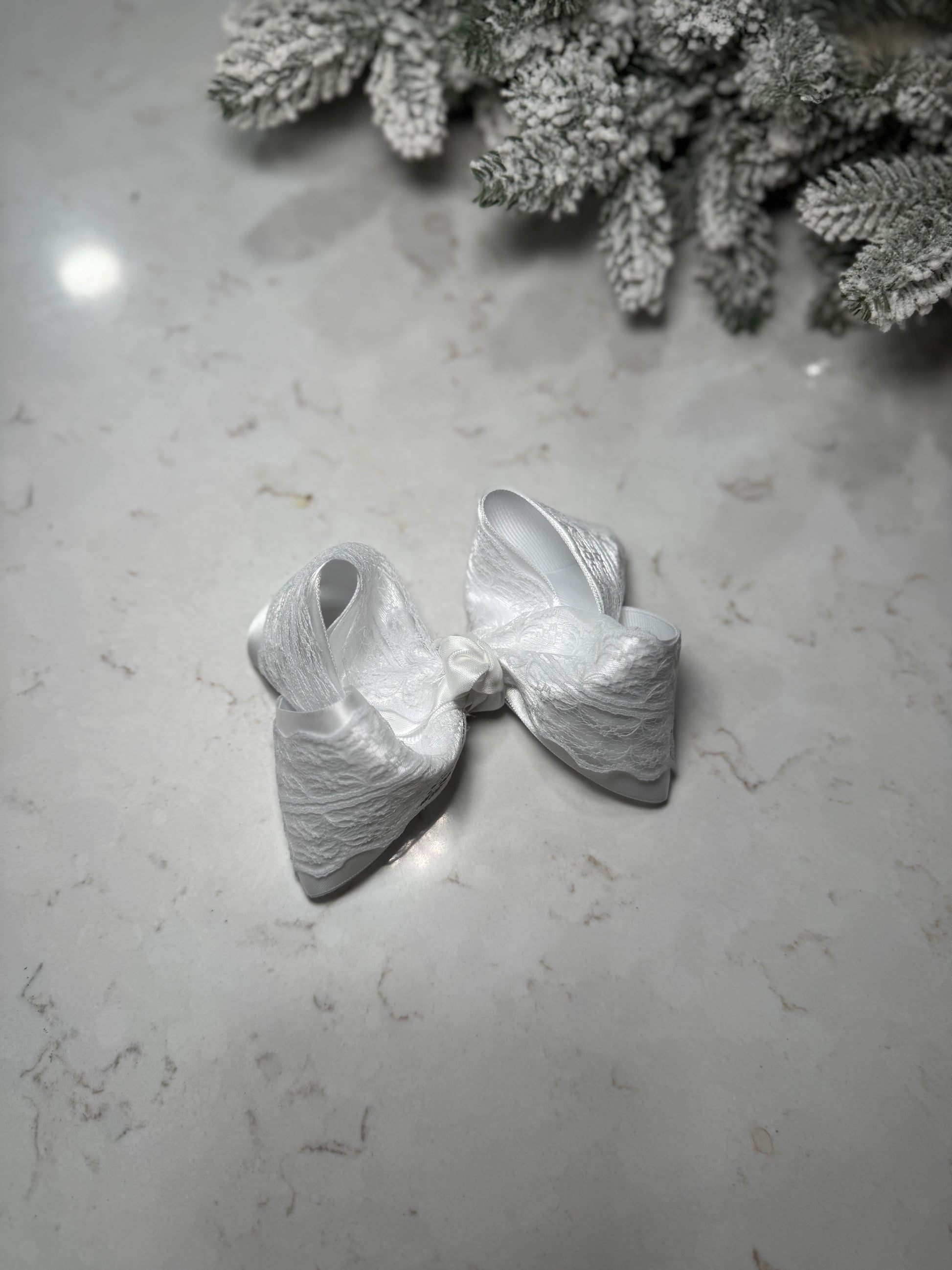 Clean, crisp, and timeless. The Angel Satin Lace Bow brings an elegant touch to any outfit with its soft satin and dainty lace details. Perfect for holidays, christenings, weddings, or everyday sweetness. Lightweight, comfortable, and handmade with care.